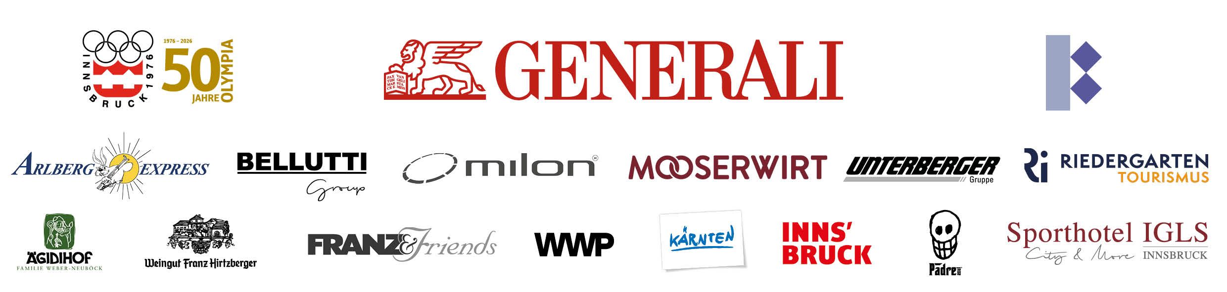 Bei den Sportlegenden gesichtet wurden u.a. Skikaiser Franz Klammer, SwissSki Idol Bernhard Russi, Olympia Dritter Herbert Plank, Speedski Ass & Charity Initiator Franz Weber, Österreichs Ski Grand Dame Annemarie Moser Pröll, Deutschlands Ski Star Maria Riesch, Olympiasieger Leonhard Stock, Kitz Rekordmann Fritz Strobl, Ski Ass Petra Kronberger, Deutschlands Ski Superstar Marcus Wasmeier, Profi Ski Weltmeister Andre Arnold, ORF Expertin & Ski As Marlies Raich, ÖSV Legende Benny Raich, ÖSV Skisprungtrainerlegende Alex Pointner und Italiens Abfahrts Ass Peter Runggaldier. Darüber hinaus wurden u.a. Generali CEO Gregor Pilgram, Generali CSMO Reinhard Pilgram, Schauspieler Ikone Tobias Moretti und Riedergarten Gründer Herbert Waldner, ORF Moderator Rainer Pariasek und Ex Mountainibiker Wolfgang Illek gesehen.