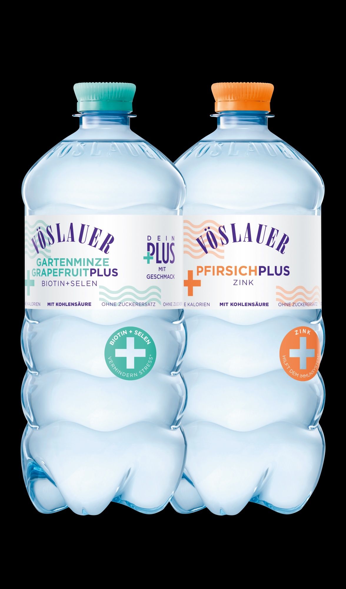 Bereits zu Jahresbeginn 2026 bringt Vöslauer zwei neue Produktinnovationen in sein umsatzstärkstes2 Gebinde, die 1-Liter-Flasche aus 100 % rePET, in den deutschen Handel: Vöslauer Flavours Pfirsich Plus Zink – mit der beliebtesten Geschmacksrichtung deutscher Konsument:innen3und funktionalem Zusatz zur Unterstützung der Abwehrkräfte. Und Vöslauer Flavours Gartenminze-Grapefruit Plus Biotin & Selen – zur Unterstützung des Schutzes vor oxidativem Stress.
