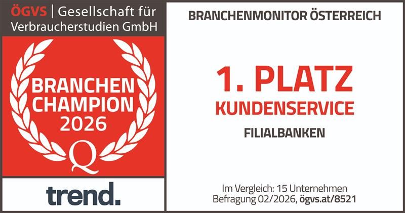 Bei der unabhängigen Befragung der Gesellschaft für Verbraucherstudien wurden rund 2.000 Unternehmen aus 184 Branchen in den Kategorien Kundenzufriedenheit, Kundenservice und Preis-Leistungs-Verhältnis bewertet – darunter 15 Filialbanken. Insgesamt wurden mehr als 370.000 Unternehmensbewertungen von Österreicher*innen im November und Dezember 2025 abgegeben.