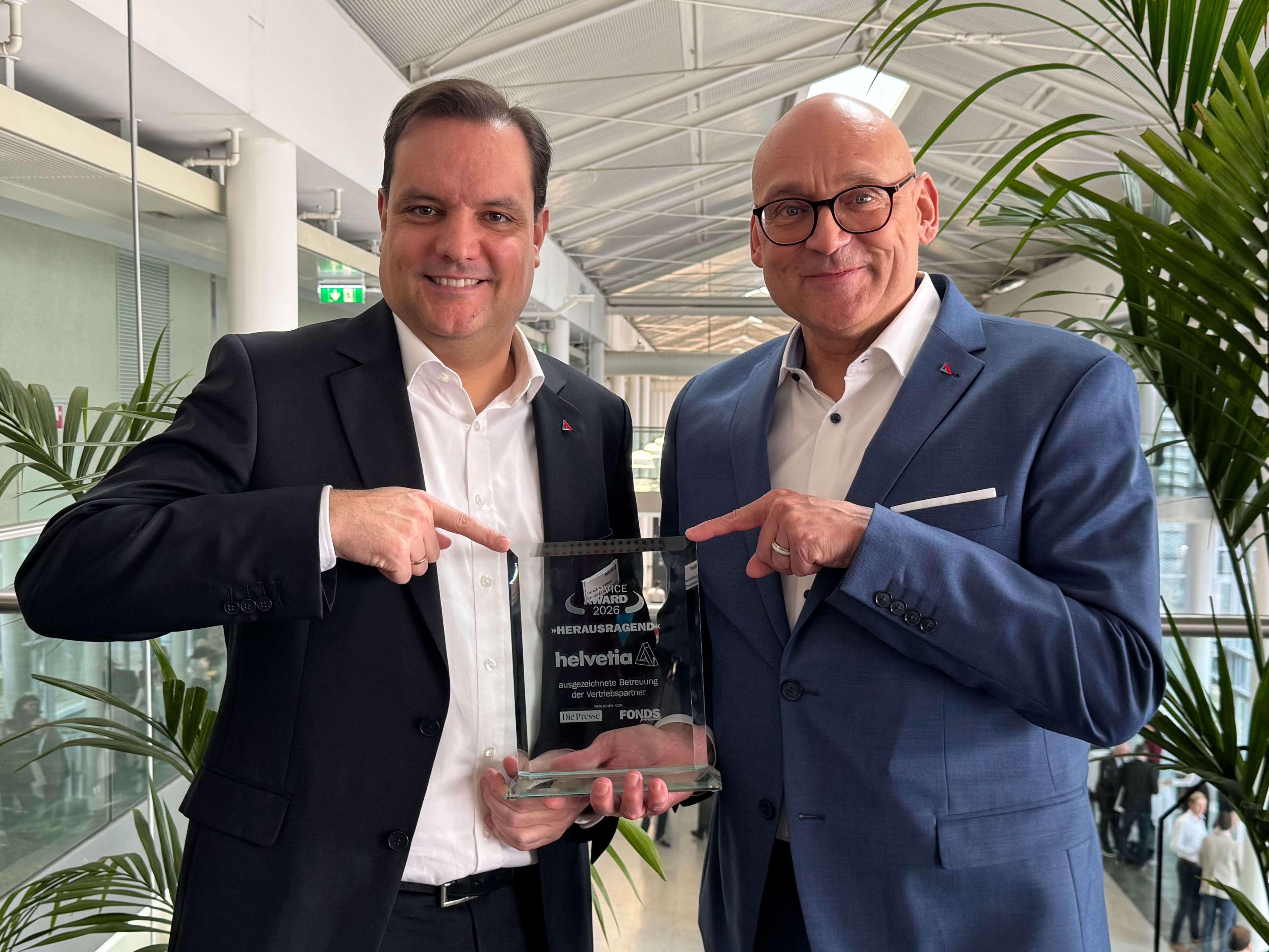 Helvetia wurde bei den FONDS professionell Service Awards 2026 erneut ausgezeichnet und in der Kategorie »Service-Qualität der Versicherer« mit »herausragend« prämiert. Damit erhält Helvetia Österreich den renommierten Branchenpreis bereits zum zehnten Mal.