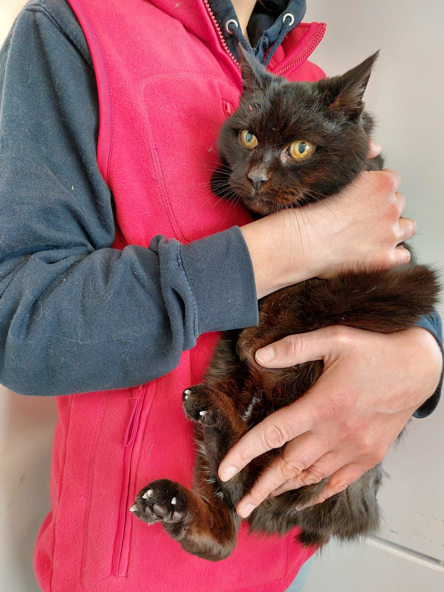 Am Dienstag wurde am Tierschutzhof Pfotenhilfe eine verwahrloste schwarze Katze abgegeben, nachdem diese bereits seit einer Woche von ihren Findern im Gemeindegebiet von Palting (Bezirk Braunau) beobachtet wurde. Die Katze ist am Fundort und auch in der Umgebung niemandem bekannt. Pfotenhilfe-Chefin Johanna Stadler: "Die schwarze Katze hat ein auffälliges Merkmal - sie hat keinen Schwanz und das Fell am Rücken war vollkommen verfilzt und verklebt, weswegen sie bei der Aufnahmeuntersuchung geschoren werden musste. Die Katze ist zutraulich und freundlich, weswegen wir davon ausgehen, dass sie einen Halter hat. Wir haben sie Clara genannt und sind für Hinweise auf den Halter dankbar."