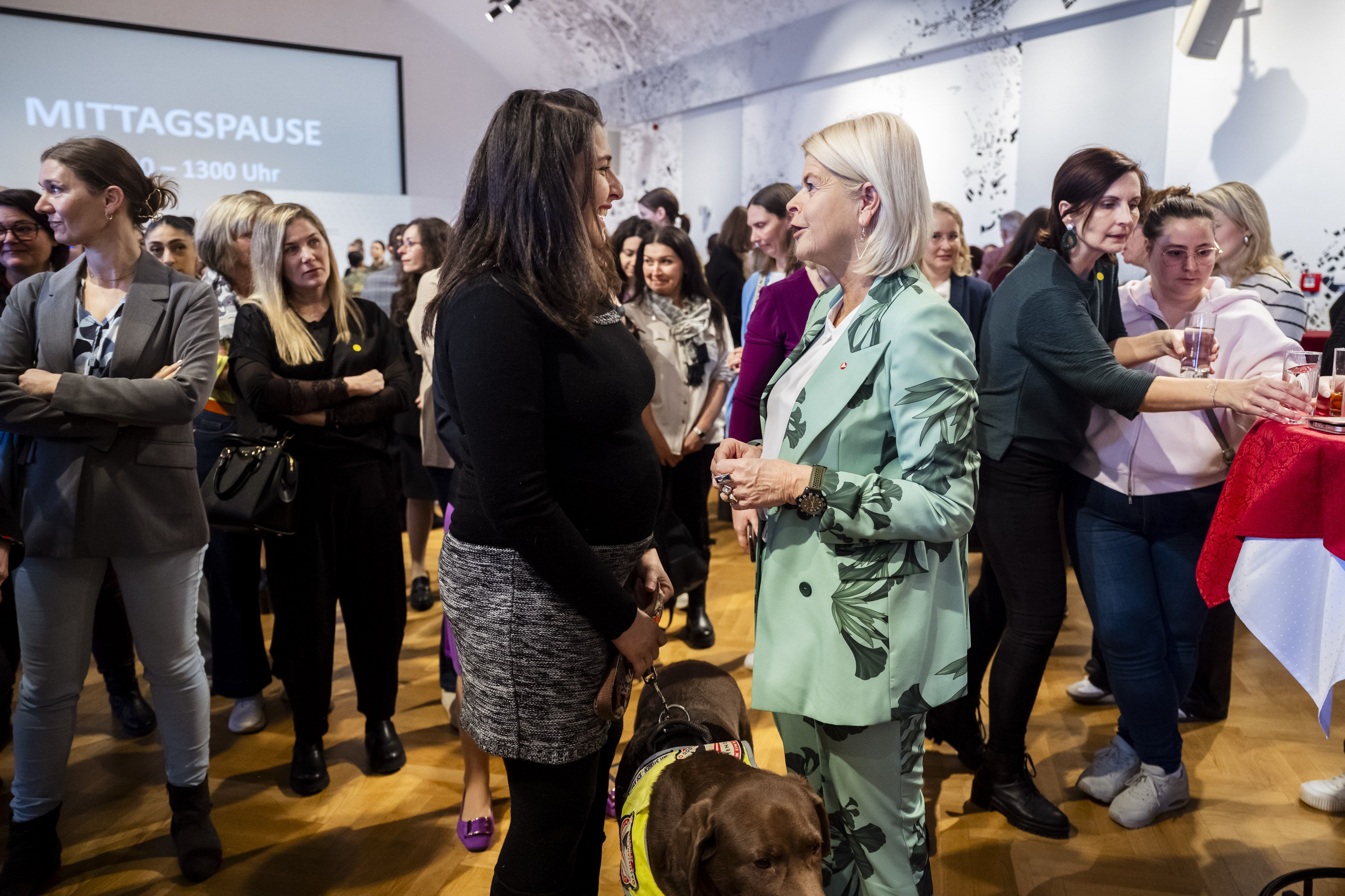 Am Donnerstag, dem 5. März, empfing Verteidigungsministerin Klaudia Tanner anlässlich des 116. Weltfrauentages in der Rossauer Kaserne in Wien zahlreiche Mitarbeiterinnen. An dem Programm nahmen 38 Soldatinnen und 195 weibliche Zivilbedienstete teil und nutzten Fachvorträge, Gespräche sowie praktische Übungen. Ergänzend zu Kamingesprächen und Vorträgen wurden zudem eine Körperzusammensetzungsmessung und ein Selbstverteidigungskurs angeboten.