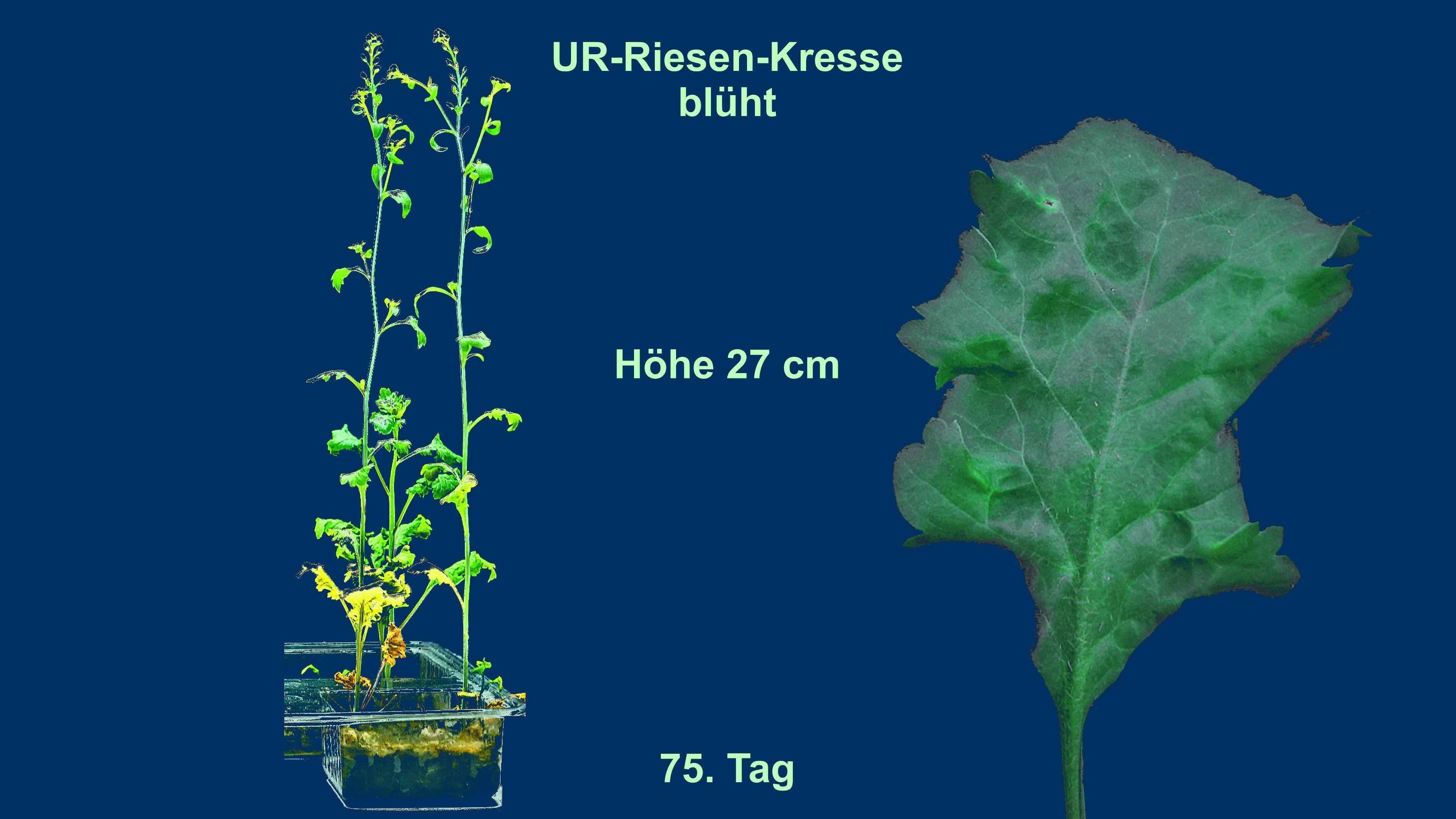 UR-Kresse hat beispielsweise viel größere, gelappte Blätter, wächst viel höher und lebt nicht 30 Tage, sondern 75 Tage.