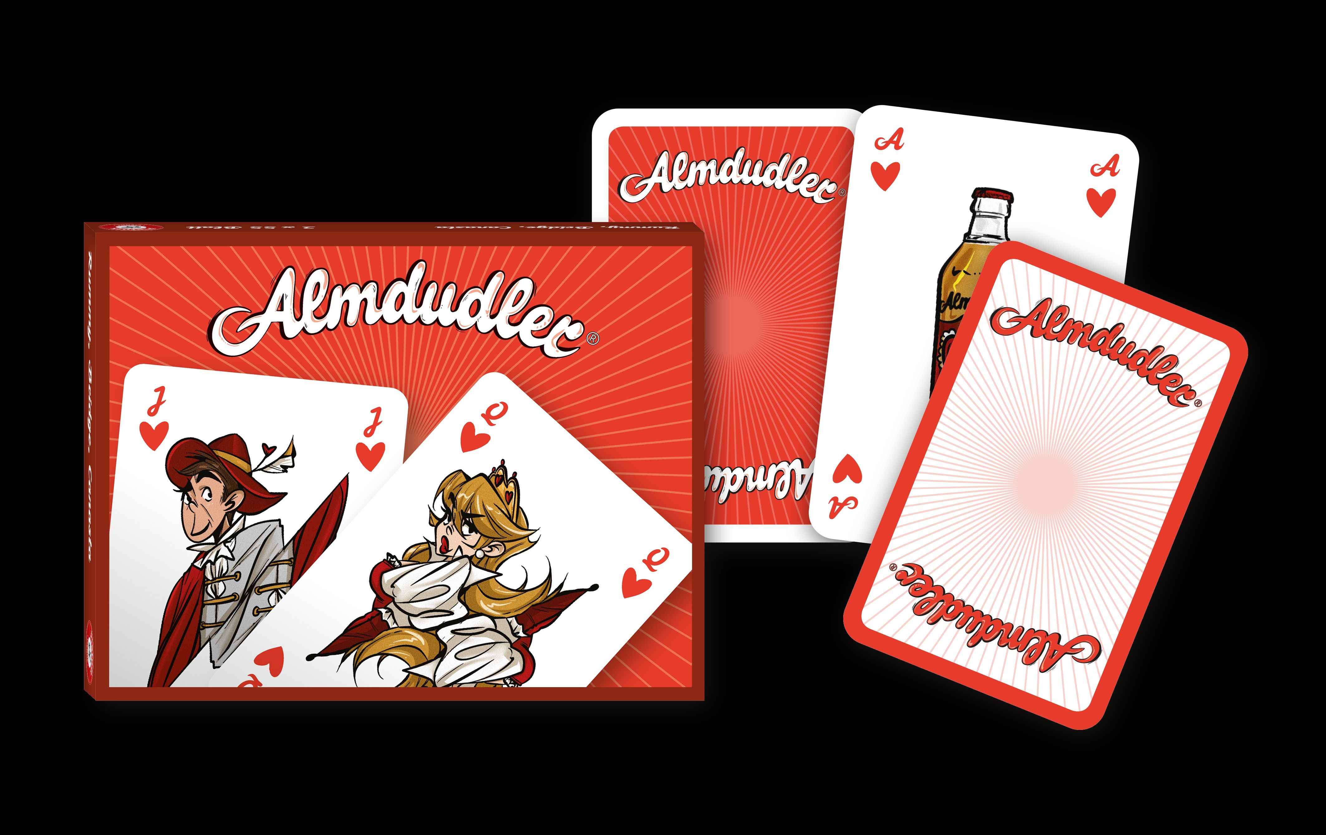 Ob beim Schnapsen in der Gaststube, beim Hüttenabend, beim Kartenspielen mit der Familie oder Freunden zuhause oder im Urlaub – das Almdudler x Piatnik Kartenset bringt Comic-Charme, Markenikonen, Erfrischung und österreichische Spielkultur in einem Blatt zusammen. Heribert Thomas Klein: “Oder anders gesagt: Dieses Deck hat Charakter. Und einen erfrischend guten Beigeschmack.”