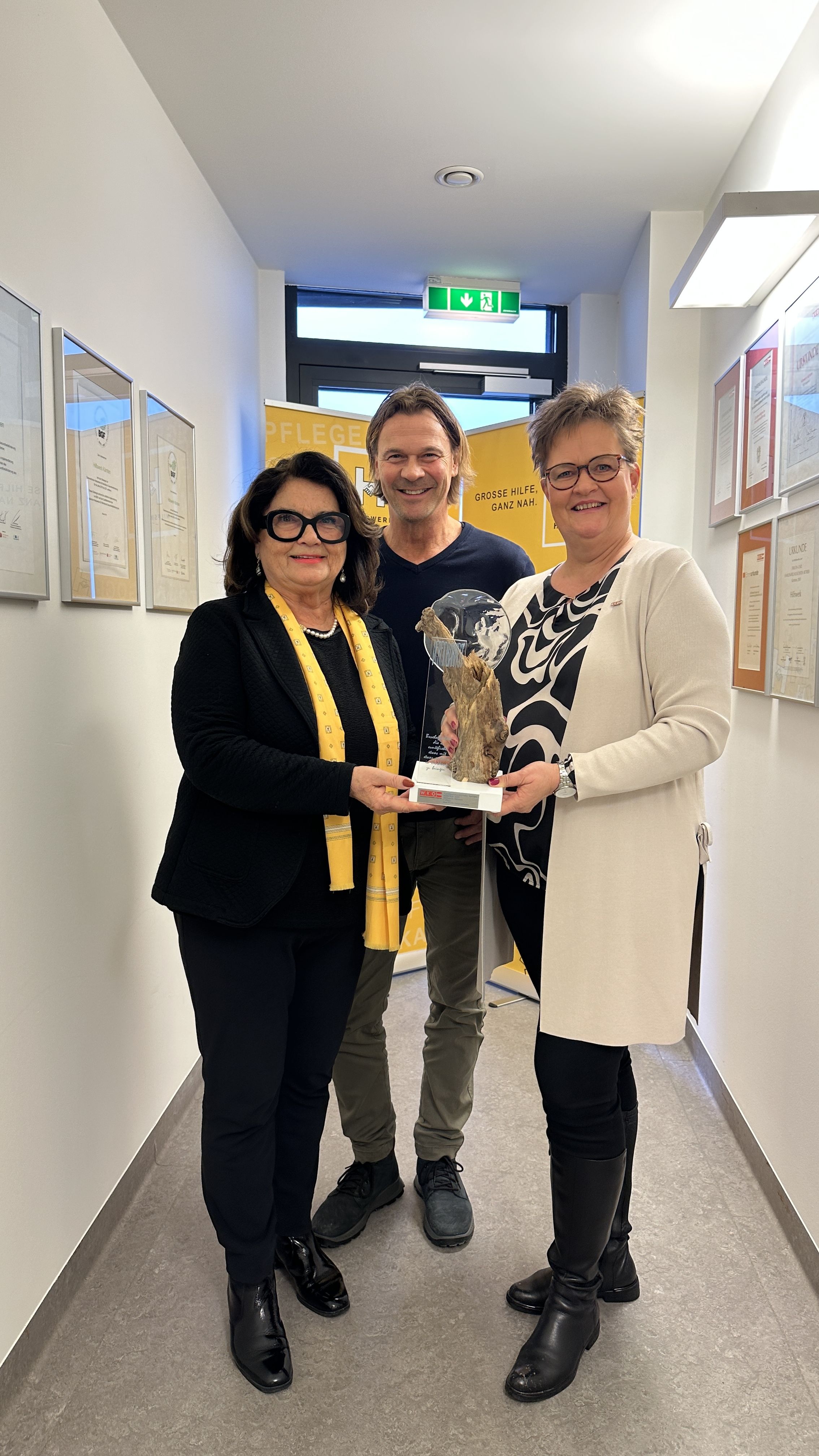Die Freude war groß, als Wirtschaftskammer-Vizepräsidentin Astrid Legner im Hilfswerk Kärnten vorbeischaute und Hilfswerk-Präsidentin Elisabeth Scheucher-Pichler den Landespreis persönlich überreichte. Mit dieser Ehrung, welche von der Wirtschaftskammer Kärnten verliehen wird, wird das langjährige Engagement des sozialen Dienstleisters im Bereich familienbewusster Personalpolitik gewürdigt. Das Hilfswerk Kärnten gilt seit Jahrzehnten als Vorreiter in der Vereinbarkeit von Beruf, Familie und Pflegeverantwortung.