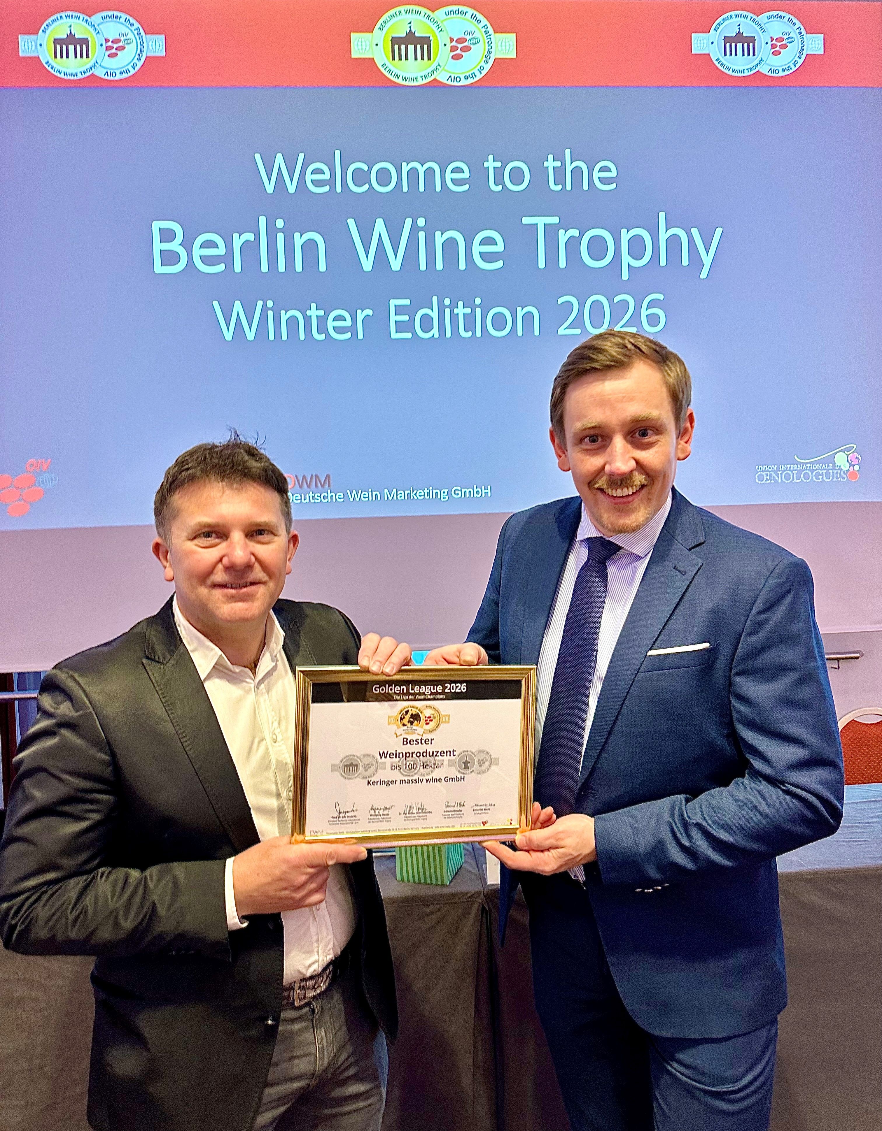 Der Golden League-Sieg 2026 ist bereits der zehnte Titel (!) für Keringer in diesem Bewerb. In diesem Ozean von Weltklasse-Weinen, zehn Mal als bester Weinproduzent (aktuell in der Kategorie bis 100 ha) – in allen drei Bewerben zusammengerechnet – zu dominieren, ist eine Leistung, die noch kein anderes Weingut weltweit erreicht hat.