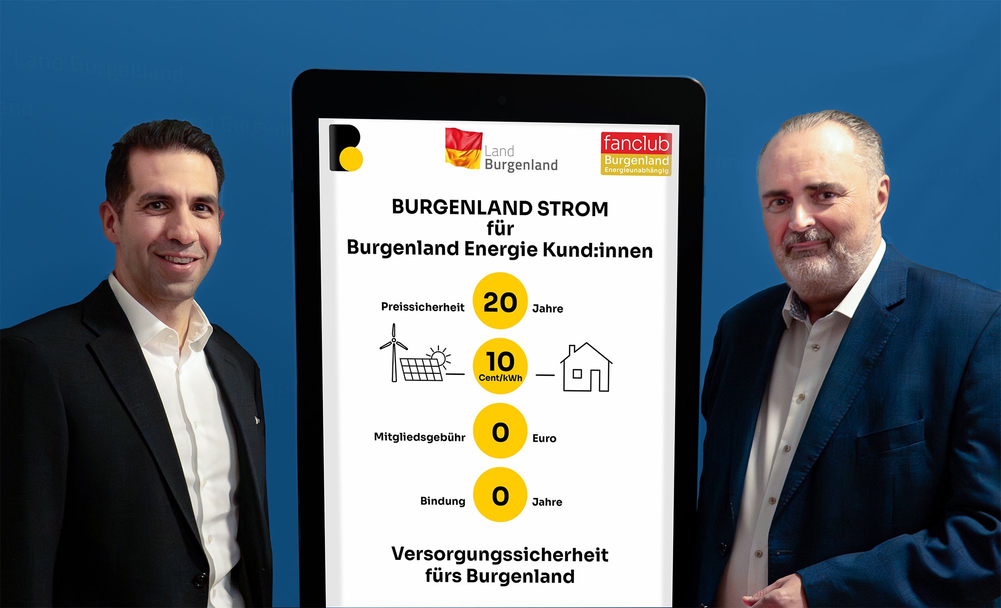 „BURGENLAND STROM ist ein neues, österreichweit einzigartiges Angebot für alle Burgenländerinnen und Burgenländer. Eine Kombination aus der Energiegemeinschaft ‘Fanclub Burgenland Energieunabhängig‘ und dem neuen Tarif Unabhängig 5.0 um 10 Cent pro Kilowattstunde. Burgenland Energie Kunden erhalten jetzt ohne Mitgliedsbeitrag für die Energiegemeinschaft unseren burgenländischen Wind- und PV-Strom mit 20 Jahren Preissicherheit (ohne Bindung) um 10 Cent pro Kilowattstunde. Die Streichung des Mitgliedsbeitrags für Burgenland Energie Kunden war nach einem Jahr aufgrund des großen Erfolgs möglich. Durch die zehnttausenden Burgenland Energie Kunden im Fanclub konnten wir in der Administration Synergien nutzen“, so Stephan Sharma, CEO der Burgenland Energie. „Den Strom, den wir im Burgenland produzieren, liefern wir über die Partner-Energiegemeinschaft Fanclub direkt an die Burgenländerinnen und Burgenländer nach Hause. Ohne internationale Börsen und Marktpreisschwankungen. Durch die regionale Nutzung über den Fanclub sparen sich die Mitglieder zusätzlich Netzkosten, Steuern und Abgaben. Mit BURGENLAND STROM erhält man volles Kundenservice, langfristige Preissicherheit und hohe Versorgungssicherheit durch die Mitarbeiterinnen und Mitarbeiter der Burgenland Energie vor Ort. Das unterscheidet uns von anderen Anbietern, die nicht vor Ort im Burgenland sind, mit Einmalrabatten lockern und in Folge des Iran-Kriegs möglicherweise die Preise erhöhen.“