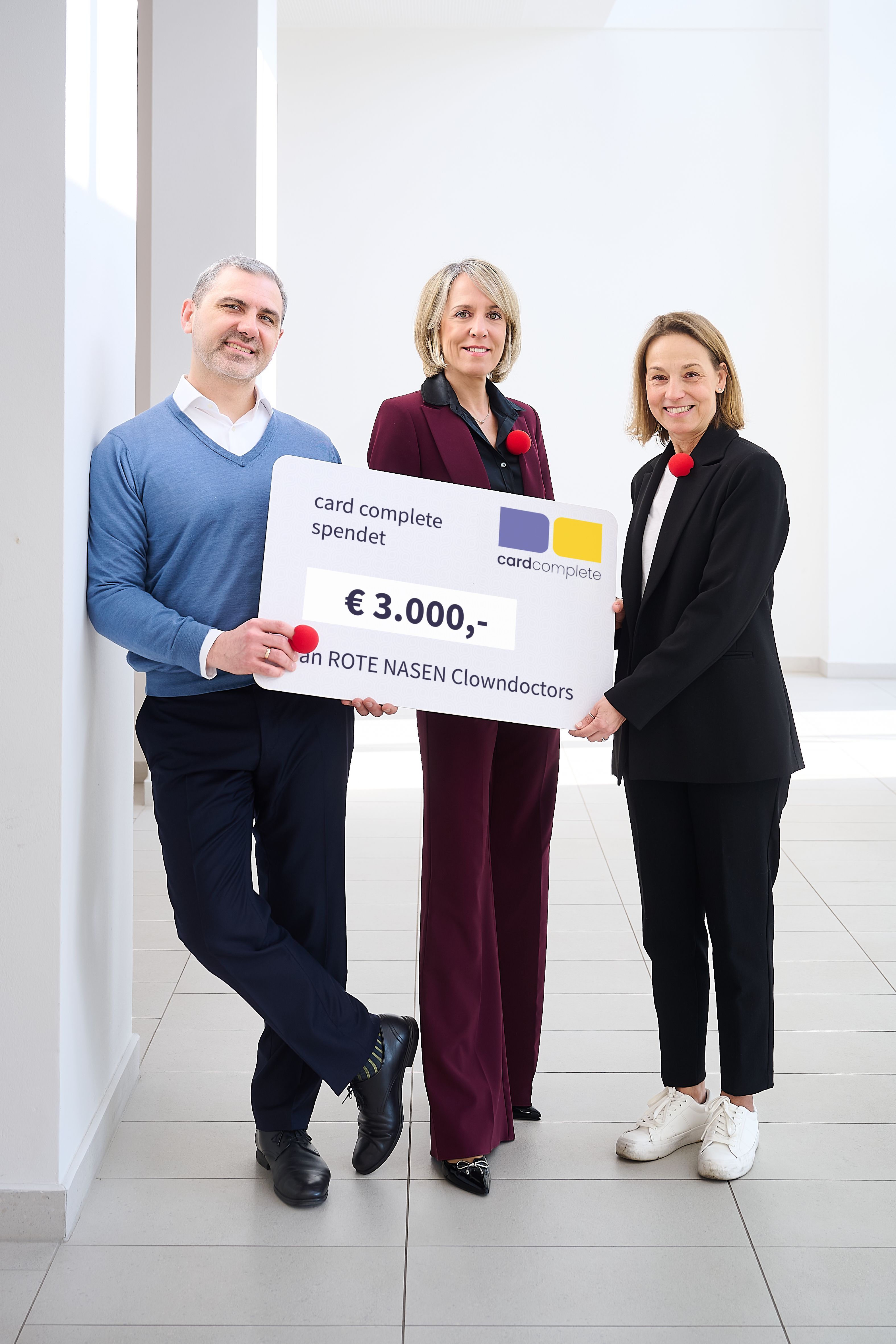 3.000 Euro für Humor im Krankenhaus: card complete unterstützt ROTE NASEN