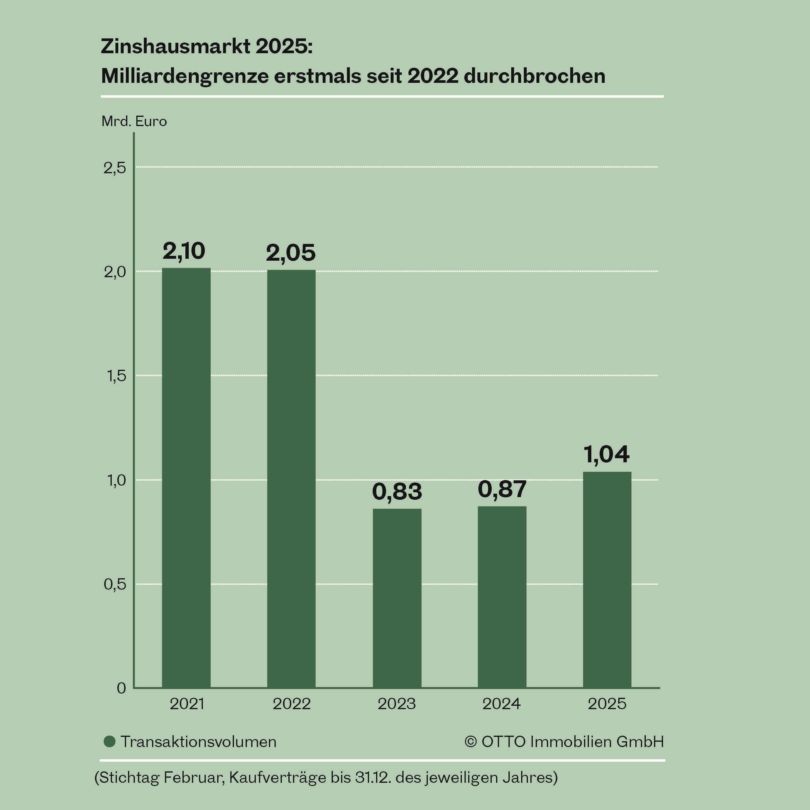 - Transaktionsvolumen steigt 2025 auf rund EUR 1,04 Mrd., ein Plus von 19 % gegenüber 2024