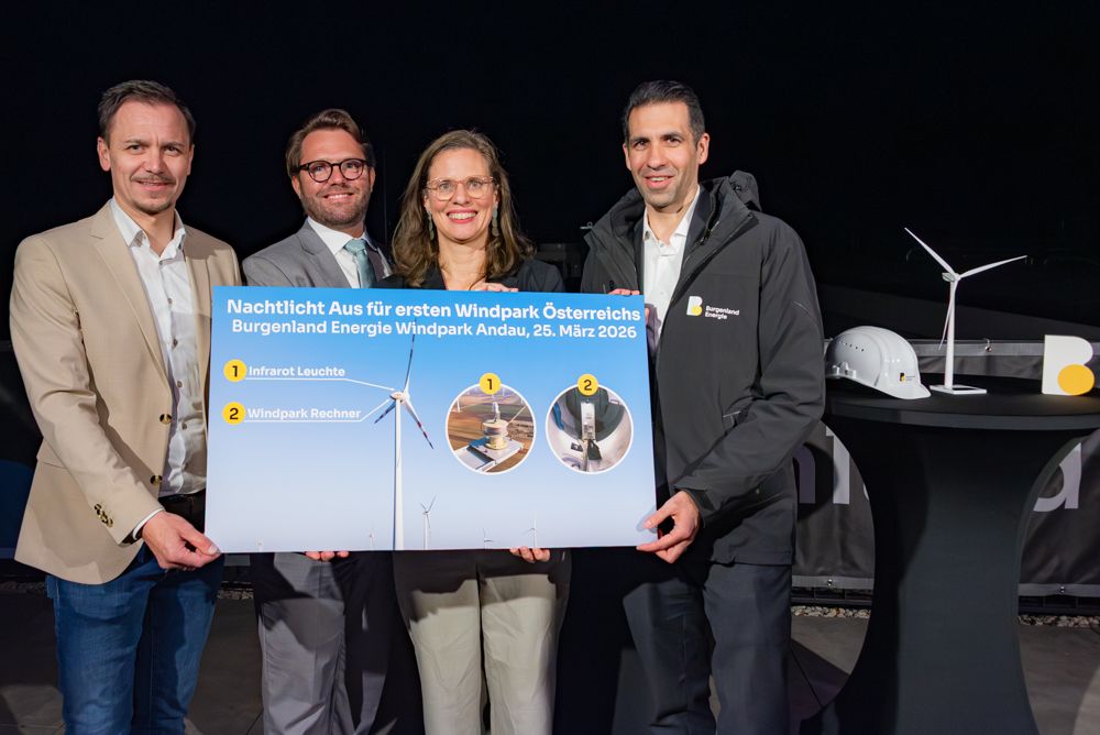 Nach den durchgeführten erfolgreichen Tests, den notwendigen neuen gesetzlichen Rahmenbedingungen sowie den erforderlichen Genehmigungen kann Burgenland Energie gemeinsam mit Austro Control diese Windkraft-Innovation heute starten. Als erster Windkraftbetreiber in Österreich nimmt Burgenland Energie die bedarfsgerechte Nachtkennzeichnung für 38 Windanlagen in Andau in Betrieb. Weitere Windparks in Neusiedl/Weiden und Parndorf sind bereits zur Umrüstung in Genehmigung und werden demnächst folgen. Bis 2027 plant die Burgenland Energie als größter Windanlagenbetreiber Österreichs bei allen Windrädern diese Umstellung vorzunehmen.