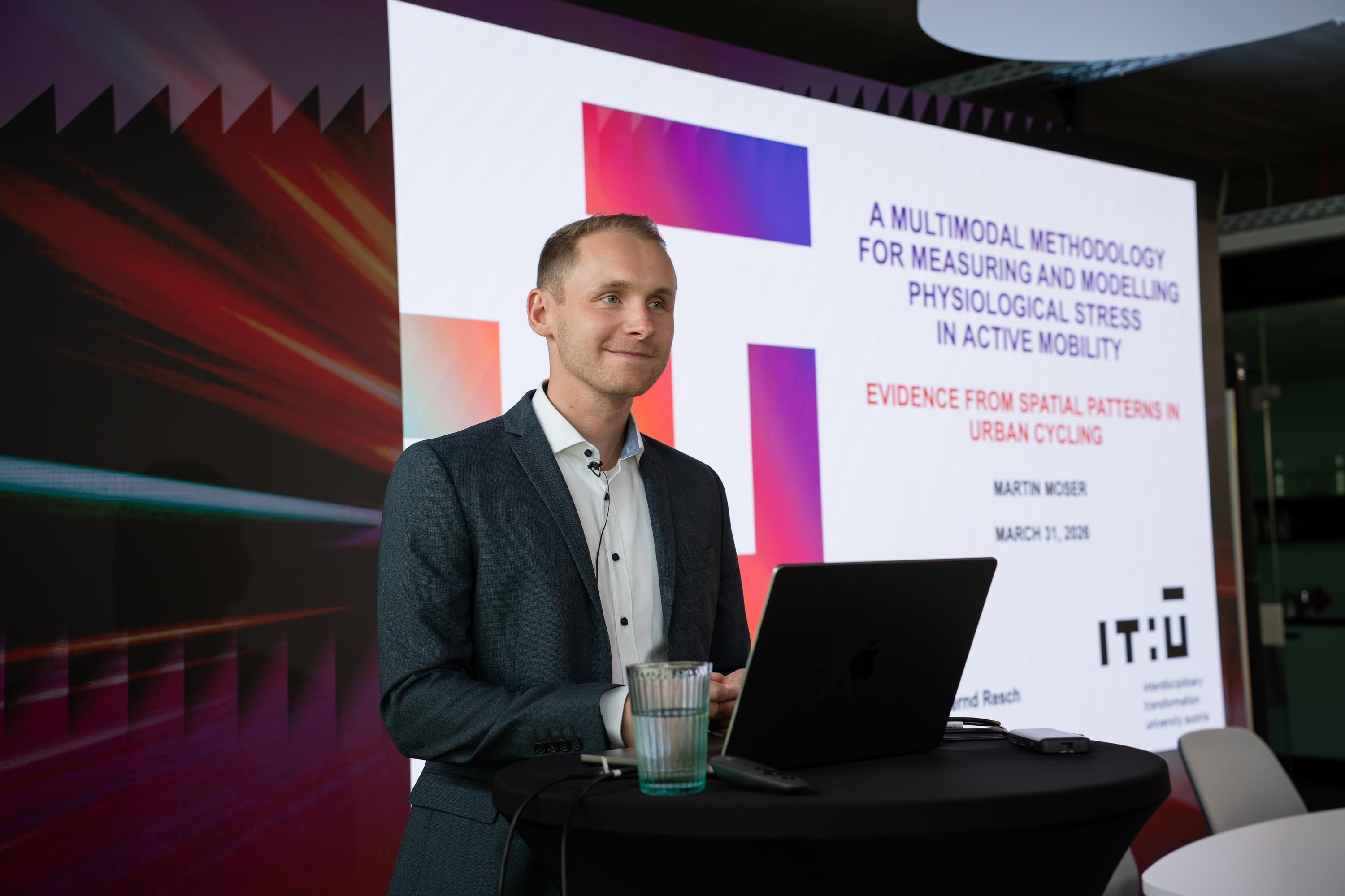 Am 31. März 2026 verteidigte Moser diese erfolgreich am IT:U Education Campus – als erster Absolvent der neuen Technischen Universität in Linz. Begonnen hatte er seine Arbeit an der Universität Salzburg (Fachbereich Geoinformatik), in den vergangenen zwei Jahren setzte er sie an der IT:U fort. „Der Unterschied liegt in der gelebten Interdisziplinarität: Für meine Forschung brauche ich Kenntnisse aus Machine Learning, Stadt- und Verkehrsplanung sowie erklärbarer KI“