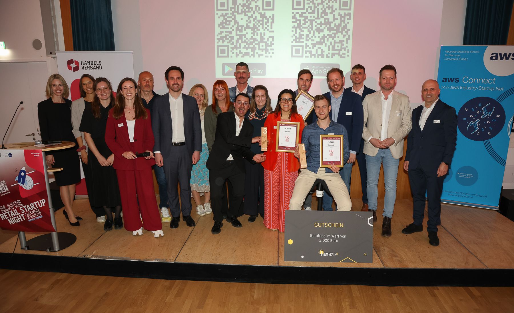 HV Retail Startup Night 2026 mit Bildungsminister Wiederkehr: Bergardi, Tagbase und Loxotec als Startups des Jahres ausgezeichnet