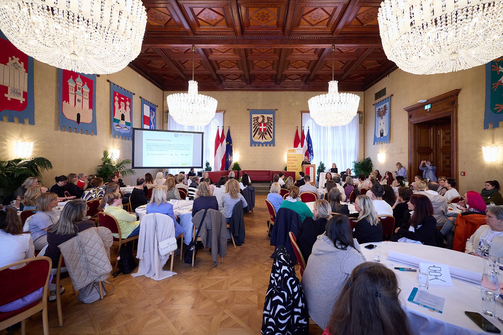 Seit über einem Jahrzehnt setzt sich das Netzwerk Gesund im Wiener Kindergarten für die Förderung von Gesundheit ein und umfasst mittlerweile 850 elementare Bildungs- und Betreuungseinrichtungen. Wie bleiben Kinder und pädagogische Fachkräfte in herausfordernden Zeiten seelisch gesund? Diese Frage stand im Mittelpunkt des diesjährigen Netzwerktreffens des Netzwerks Gesund im Wiener Kindergarten, das auch heuer wieder im Wiener Rathaus stattfand. Rund 120 Expert*innen aus dem Elementarbereich richteten dabei den Blick besonders auf die vielfältigen Belastungen, mit denen Einrichtungen heutzutage konfrontiert sind – und darauf, wie sich diese auf Kinder und Fachpersonal auswirken. Unter dem Leitthema „Aktuellen Herausforderungen begegnen: Seelisch gesund bleiben“, tauschten die Teilnehmenden ihre Erfahrungen aus und entwickelten gemeinsam neue Lösungsansätze.